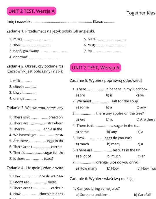 Dodatkowe zadania gramatyczne z rozdziałów 1-4. Zakres gramatyczny ze stron My grammar w podręczniku.