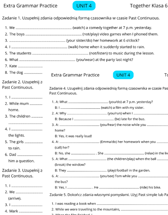 Dodatkowe ćwiczenia gramatyczne do rozdziałów 1 i 2 podręcznika Together dla klasy 6.